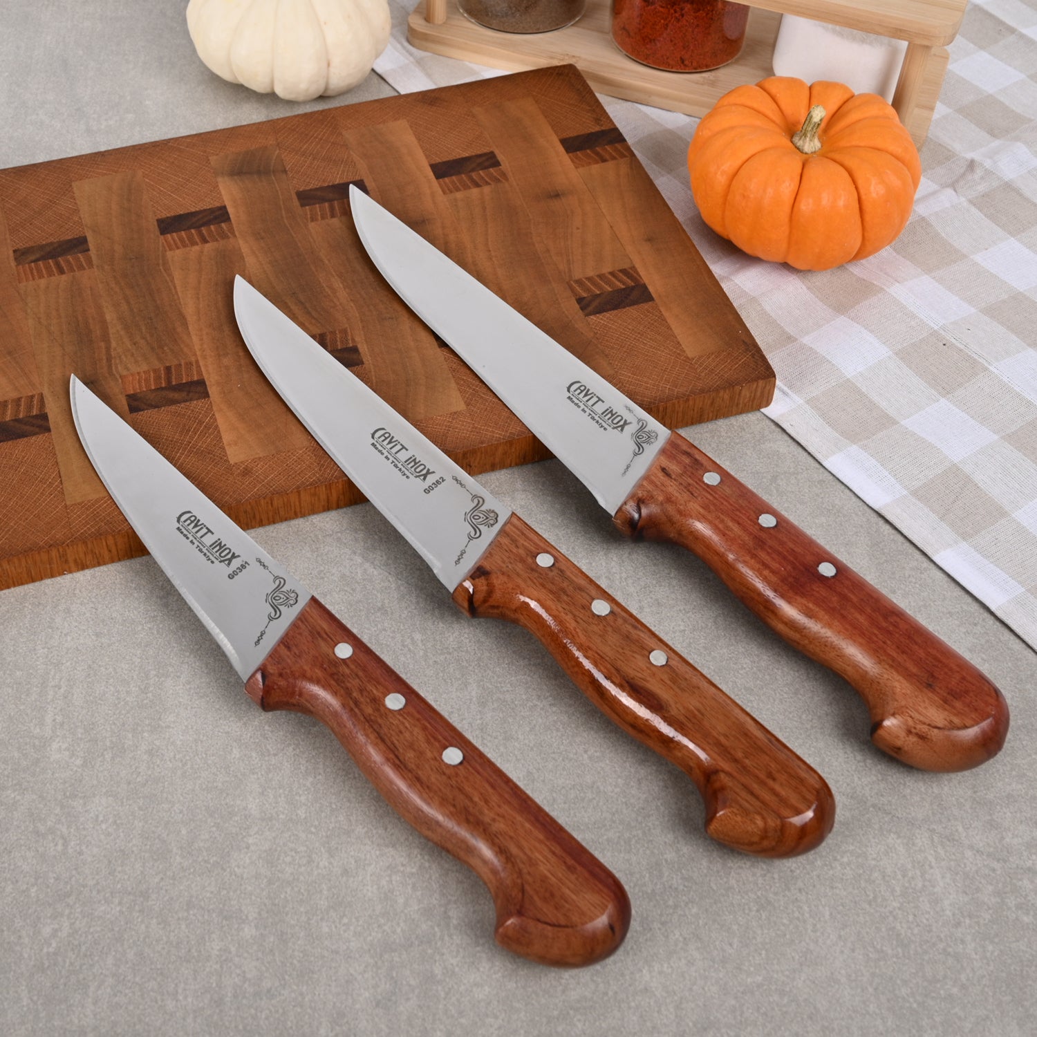 Mutfakta hem estetik hem dayanıklılığı bir arada arayanlar için özel olarak tasarlanan bu set, tamamı paslanmaz çelikten üretilmiş 5 adet bıçaktan oluşur. Kabze kısmında kullanılan Afrika menşeili Gül Ağacı, özgül ağırlığı yüksek, sert yapısı ve uzun ömürlü dayanıklılığıyla bilinir. Doğal dokusu sayesinde her bıçak benzersiz bir görünüme sahiptir.